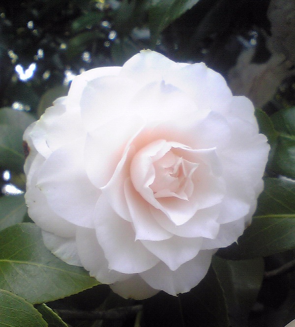 優しい色の椿ですね。