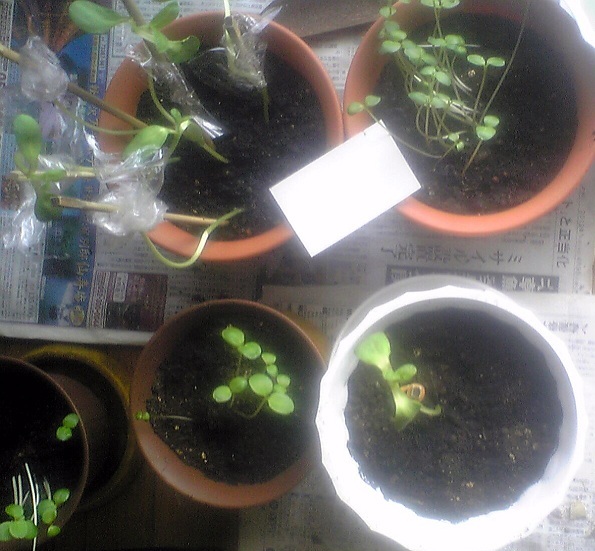 4/2320度15:00ほうせんか本葉でる。一部植え替え。