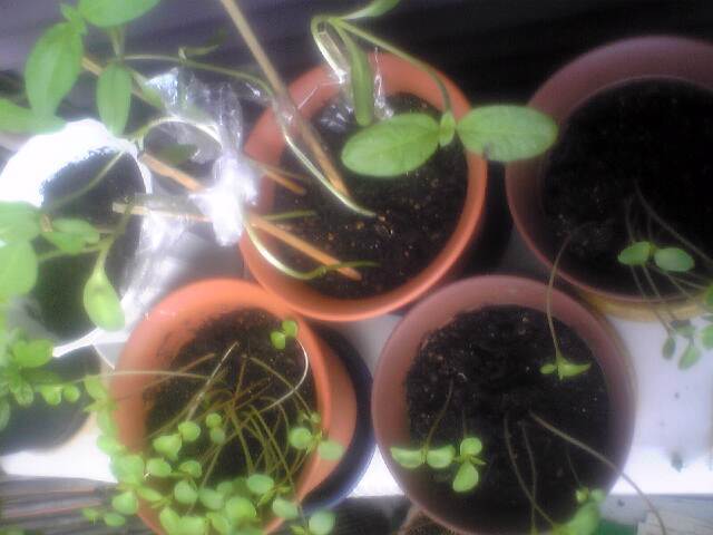 4/2320度15:00ほうせんか本葉でる。一部植え替え。
