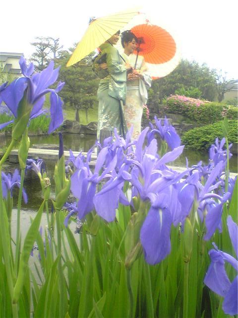 八橋のかきつばたは、平安の歌人"在原業平"が、「からころも きつつなれにし つましあれば はるばるきぬる たびをしぞおもふ」と、句頭に「かきつばた」の5文字をいれて詠んだように伊勢物語の昔から知られるかきつばたの名勝地です。