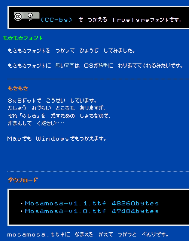 もさもさフォントていうのを見つけまして、さっそくwindowsフォルダのフォントフォルダに格納しました