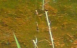 ほとんど、見えないが4つの点が羽にあり、ヨツボシトンボという名前が。これは、貴重な種類で、環境のきれいな場所しかいません。50年前には知多に普通にいたようですが、農薬で一気にいなくなった。名古屋は農薬をやらないので、残ったようです。天白区にて。