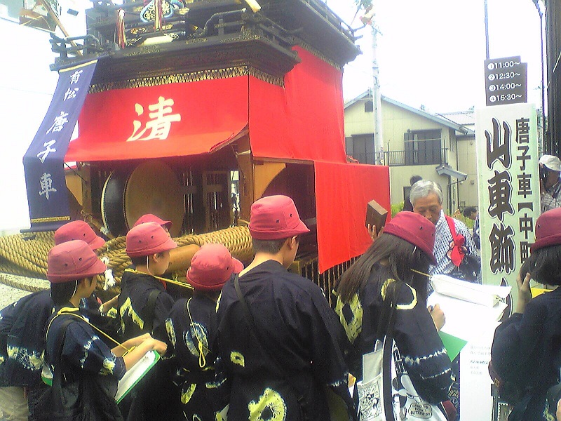 子供は学習し、聞いて回ります。町の歴史研究でしょうか?
