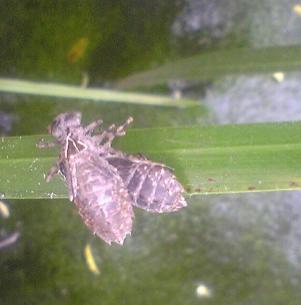 他にいい場所がないのか、ヤゴも羽化するとき、先輩のヤゴの上にぶら下がりました。