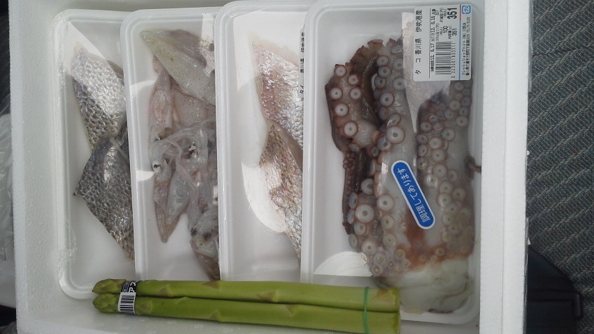 蛸や太刀魚,鯖などのパックに,水揚げされた港名を記したラベルが付けられている。新鮮さは言うまでもなく,また拙宅近くのスーパーと比べ値段も安い。