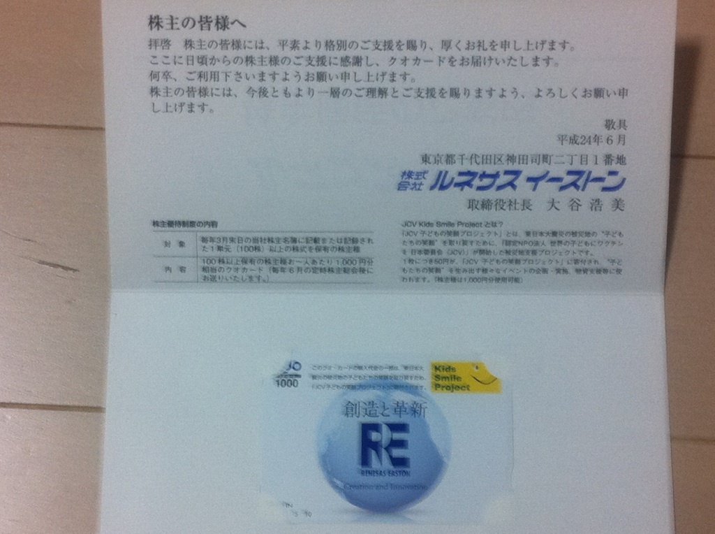 昨日、木曜日にルネサスイーストンの優待が到着~