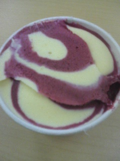 このカシスオレンジ、中にオレンジの粒の皮が入ってます。フレッシュ感があるアイスで、おいしいです☆みずみずしい味。というのが正しいのかな。