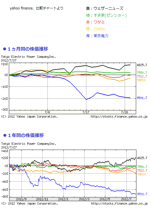 東電以外では1ヵ月間でも1年間でも、TOPIXを上回る成果でした。
