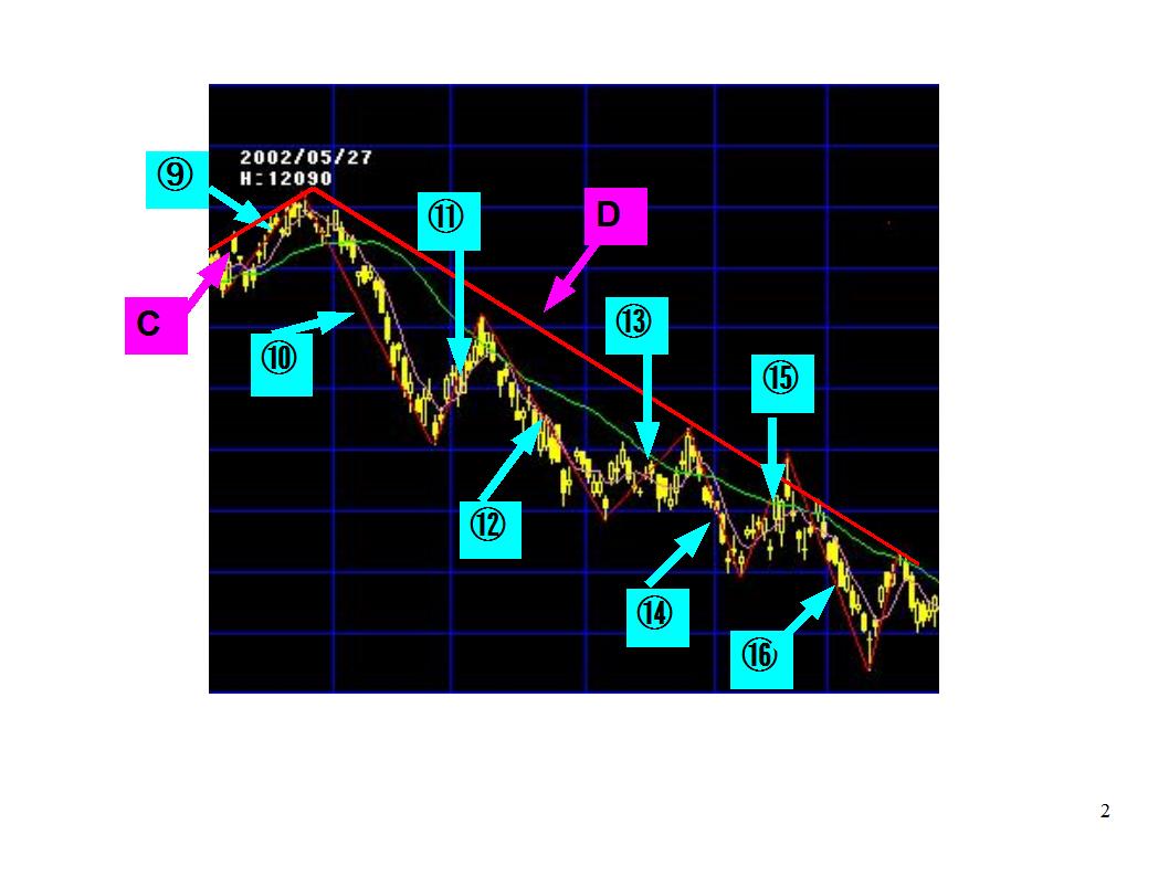 B.長い時間軸のトレンドだけを意識して「2」を順張りと考える中期投資家