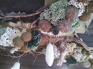 奥のほうにへちまが売ら下がっています。