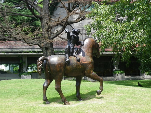 平日なので空いています。ここで一休み。美術館の周りに彫刻があります。