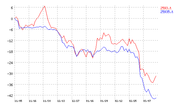 個人株主にはメリットの多い優先株ですが、知名度の低さからか、伊藤園優先株式は株価が低迷しています(普通株1,745円に対して優先株1,060円)。 添付した比較チャートを見ても普通株との差が開いてきています。
