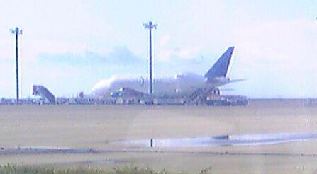 滑走路の100m隣をバスで移動。
