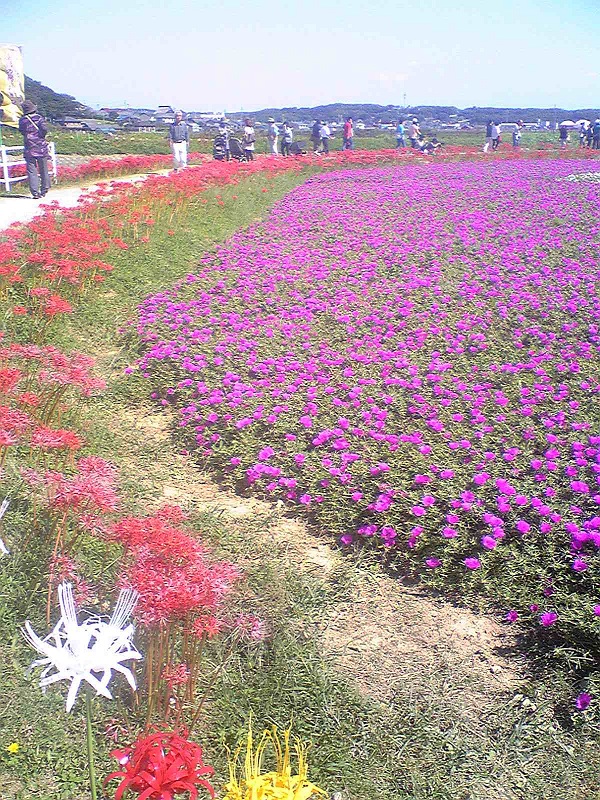 彼岸花だけかなと思っていましたが、ピンクと白の花も植えられているんですね。