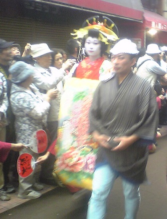 おいらん道中の集合まえ、すごい人がいました。トイレがなく、大須の電気街に行かなくては。ダースベーダーや人気の団子屋さん、大須ういろうなどありました。