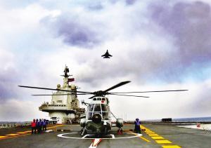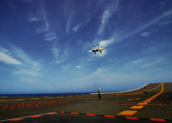 中国の空母「遼寧」が初めて出航、「殲15」艦載機が超低空飛行