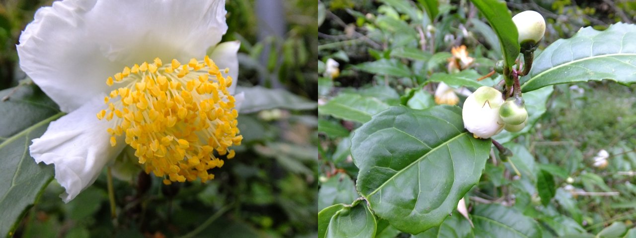 通学路にお茶の木を垣根代わりにしている家があって、白い花が咲くととてもきれいでした。