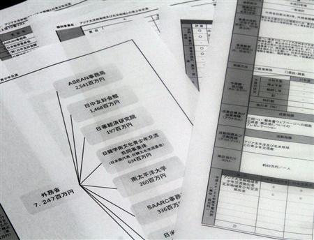 総事業費72億円は、事業を行った外郭団体などに拠出された。中韓関連でいうと、「日中友好会館」に14億6800万円、「日韓学術文化青少年交流共同事業体」に6億3400万円で、計約21億円になる。