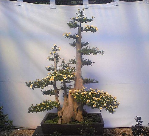 こんな樹木に絡めた菊の仕立物。作った人に聞くと、終わったら下で切ってしまい、