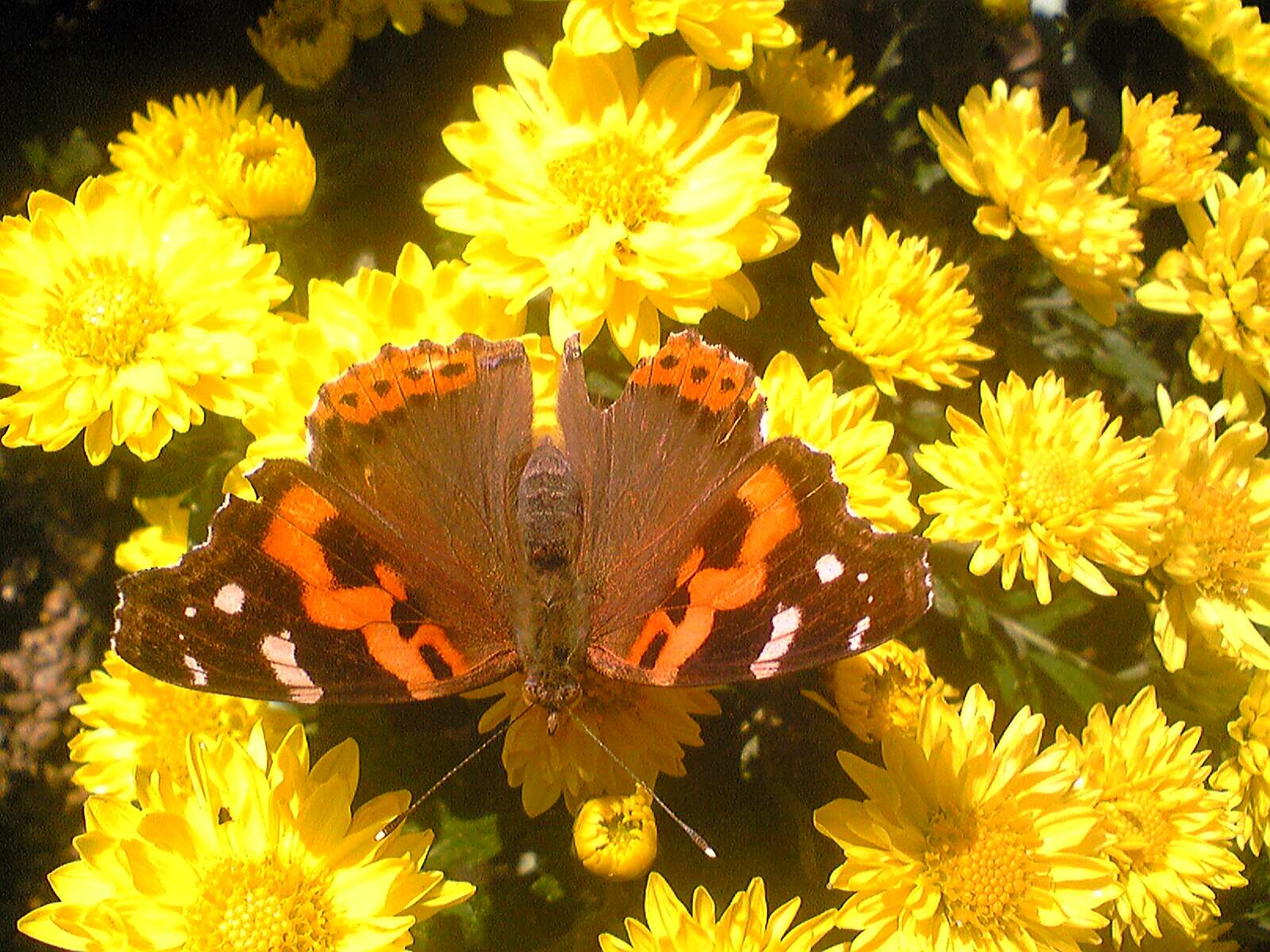 黄色の菊に、綺麗な蝶ですね。
