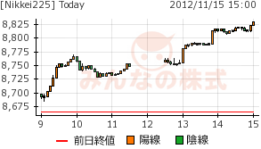 そんな中での為替と株価の動きなので、上昇トレンドに移行するとは簡単に言えそうに無い。が、今日のNKが続騰で8900円台に到達すると、チャート的には上昇トレンドに入りやすくなる。