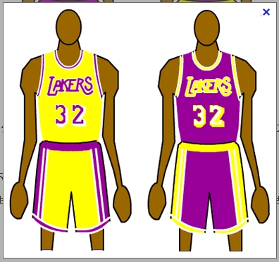 アメリカンバスケットボールのレイカーズのユニフォームを見てください。