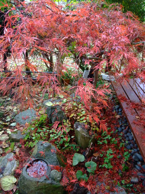 モミジも赤、黄、緑と混じり合って映えるようですね。