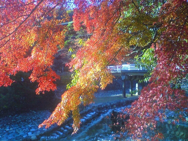 養老の滝は紅葉も見頃。京都の落ち着いた紅葉もいいが、大きな山と川のある風景もいい。