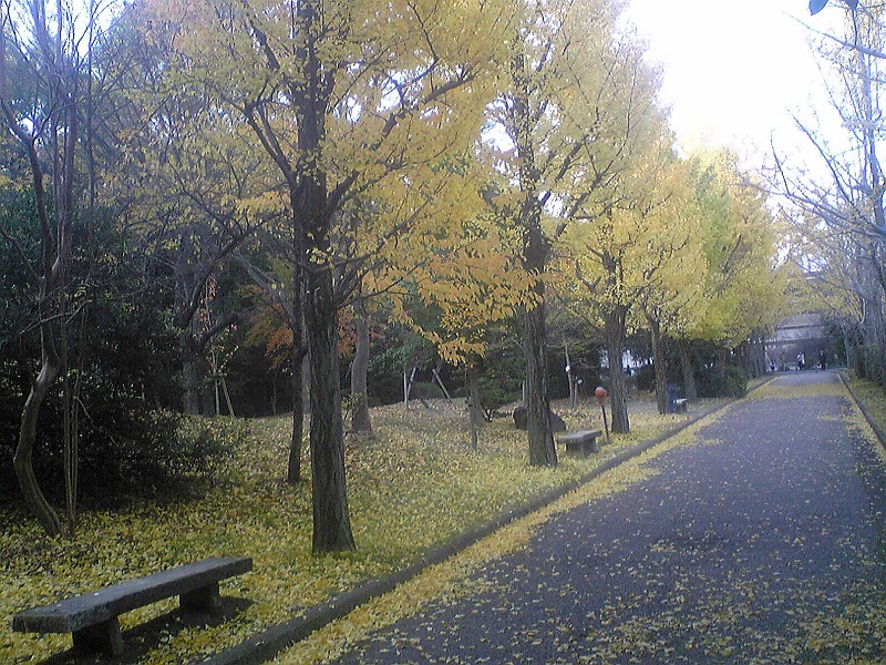 熱田神宮のイチョウ並木がきれいで、写真を撮ると、嫌なにおいが。