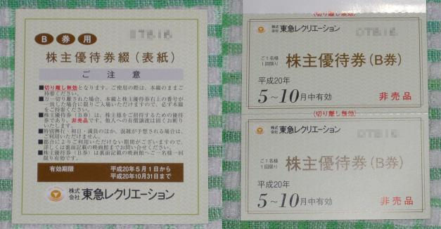 東急レクリエーション 株主優待到着