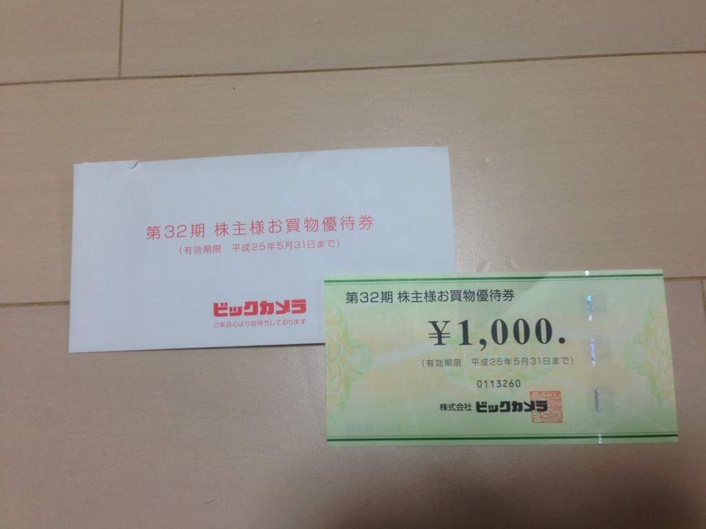 ビックカメラの優待券はうれしいですね。