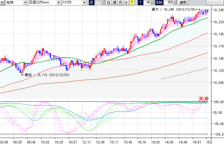 日経225mini先物チャート(下) : 96ティック足