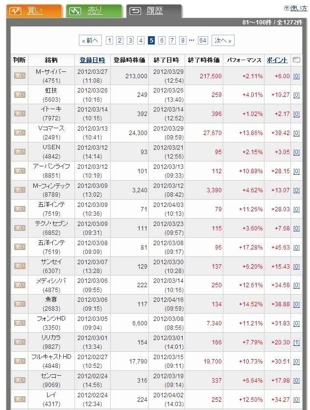 1ページが20回の履歴ですから 20x 5ページで100連勝です