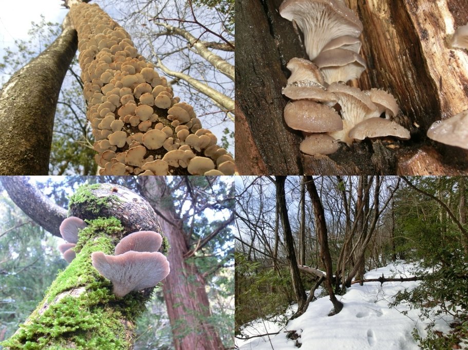 写真右上のアベマキの枯れ木に出るヒラタケが旨いですね^^