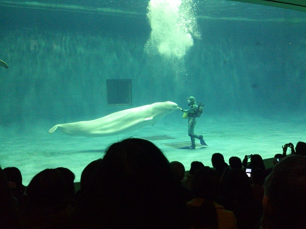 このシロイルカは水槽の中で芸を披露するタイプだそうです( ・∀・)つ〃∩ヘェーヘェーヘェー