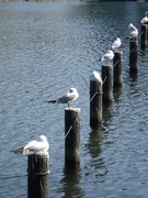 杭1本ごとにユリカモメ(?)らしきヤツが1羽ずつ。海岸から出張してきたのか。