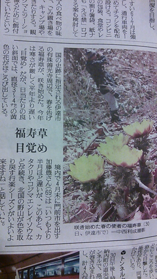 福寿草が咲き始めたという