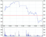ストップ高後反落しました。