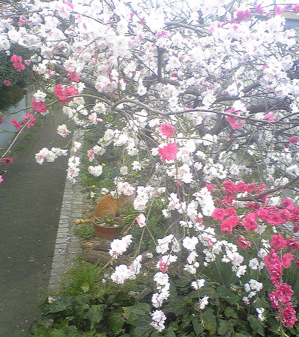 1本の木で赤と白が咲いているので「思いのまま」かと思いましたが、桃の花だったんですね。