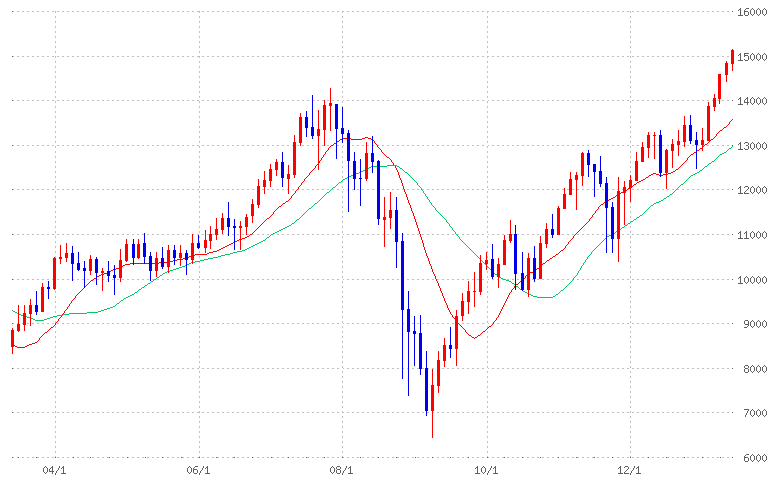 世界同時株高に歩調を合わせていて(しかもまだ出遅れ)、円安のせいで円建ての株価が膨張して、