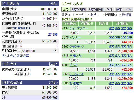 あと,今週はDeNA でも 50万ほど損切りしている。