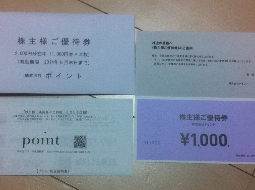 ポイントの優待券が到着しました。