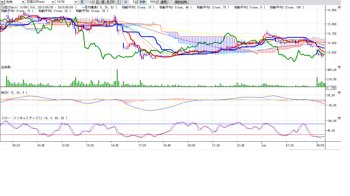 下値めど トレンドライン13200~13000あたりかな?