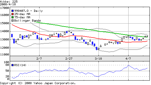 日経平均にはボリンジャーバンドつけてみました(^^ゞ