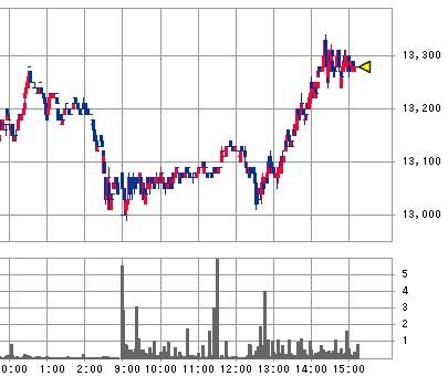 昨晩のシカゴ日経平均の終値が12,980円だったにも拘らず、朝の寄り付きはそれより120円以上高く始まりましたね。