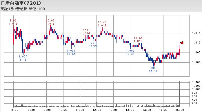 こうした買い支えの効果が出たのか12:45頃に13,145円位まで値戻しすることに成功しましたが、13:00頃に出来高が増えて下落が始まり、14:00頃にも出来高が増えて下落が加速していって14:12頃に本日の最安値12,966.41円へ下落して13,000円割れへ再び追い込まれる形になりました。