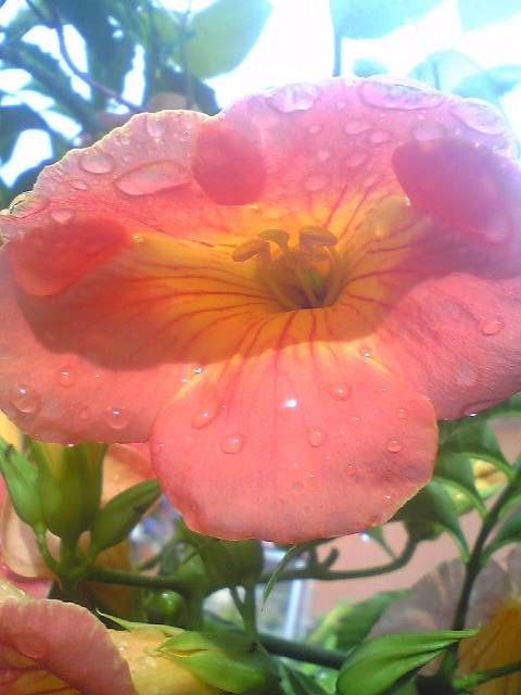 露にあたったノウゼンカズラ