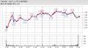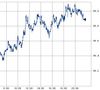 日本時間23:30(シカゴ時間10:30)に下落しているのは、東証の終値が高すぎたことを理由にしているのではなく、ほぼ同時間帯23:15(シカゴ時間10:15)でシカゴグローベックスのダウ平均先物価格が下落していることと並行して生じ、日本時間4:55(シカゴ時間14:55)に下落しているのは、ほぼ同時間帯でシカゴグローベックスのダウ平均先物価格が下落していることと並行して生じていますので、海外の株価に左右される展開が続いているだけと考えて良いと思います。