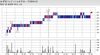 10:00頃に先物の出来高が朝の寄付きよりも急増したタイミングで株価の上昇を意味する赤の線の直ぐ直後に青の線が並んでいることから判るように、この時間帯には売り方と買い方の両方の仕掛け的な売買が交錯した模様で、それ以降は11:00頃まで一進一退を繰り返してほぼ横ばいの状況が続きました。