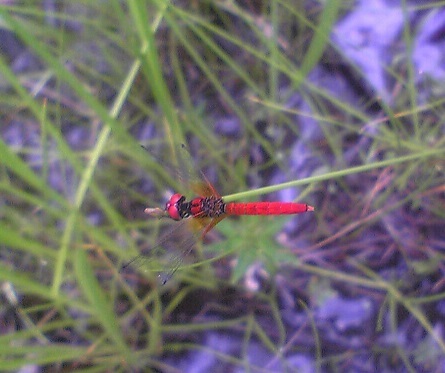 とっても小さくて、しかも色も赤で、かわいいトンボですね![]()